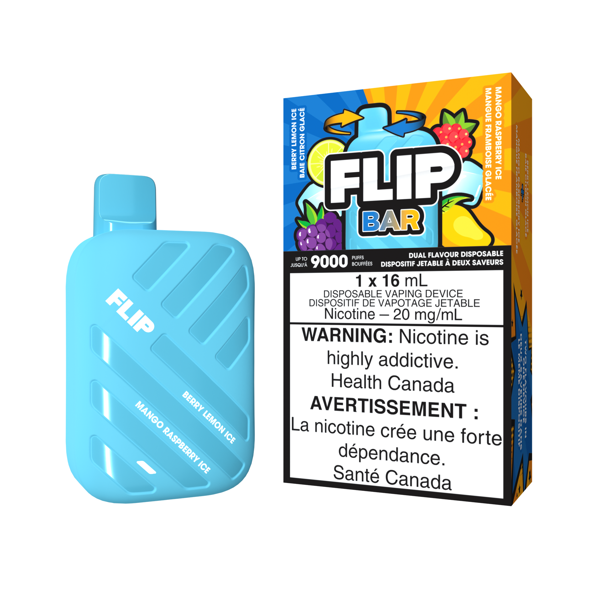 FLIP BAR DISPOSABLE - BERRY LEMON ICE AND MANGO RASPBERRY ICE (5PC/CTN) 16ML 20MG