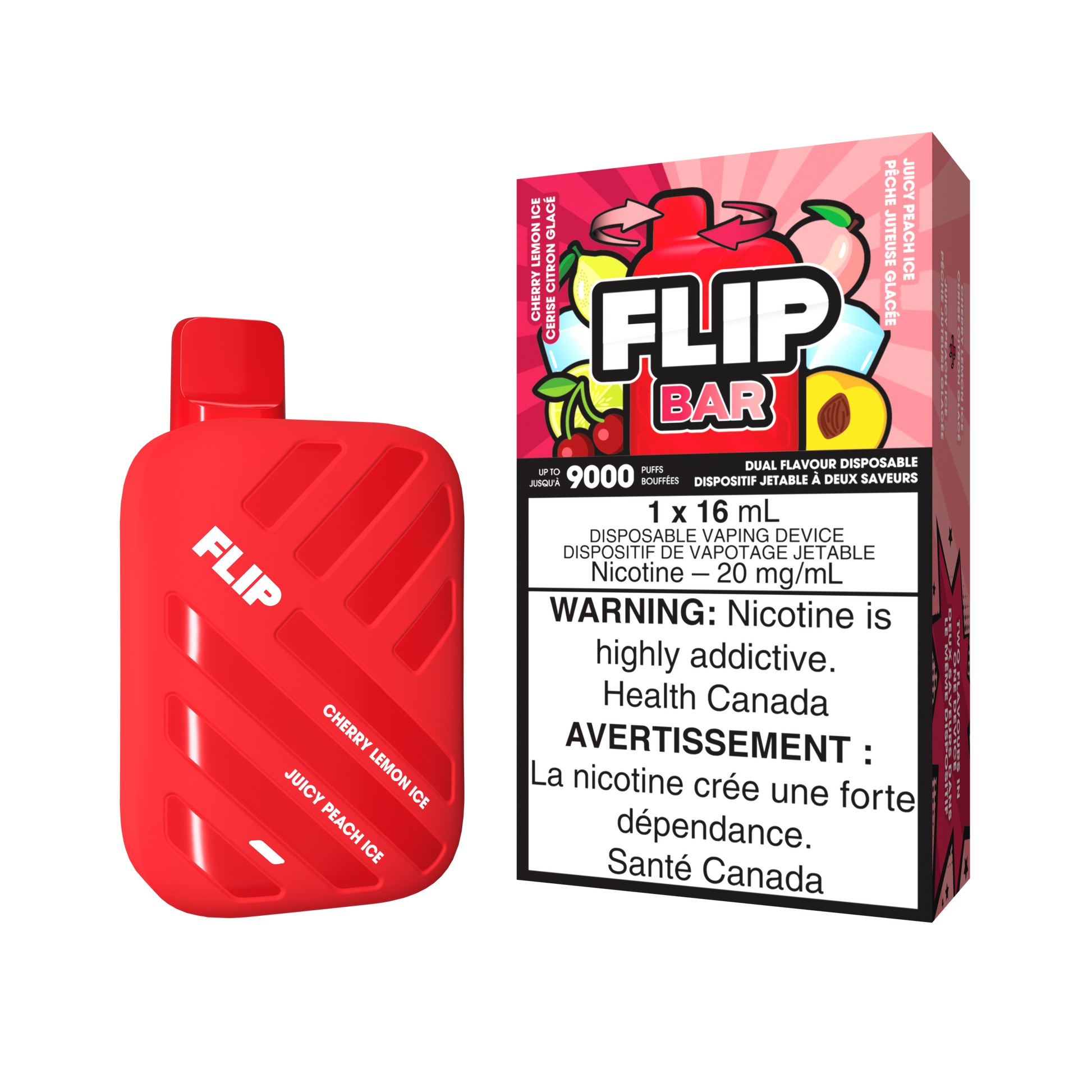 FLIP BAR DISPOSABLE - CHERRY LEMON ICE AND JUICY PEACH ICE (5PC/CTN) 16ML 20MG