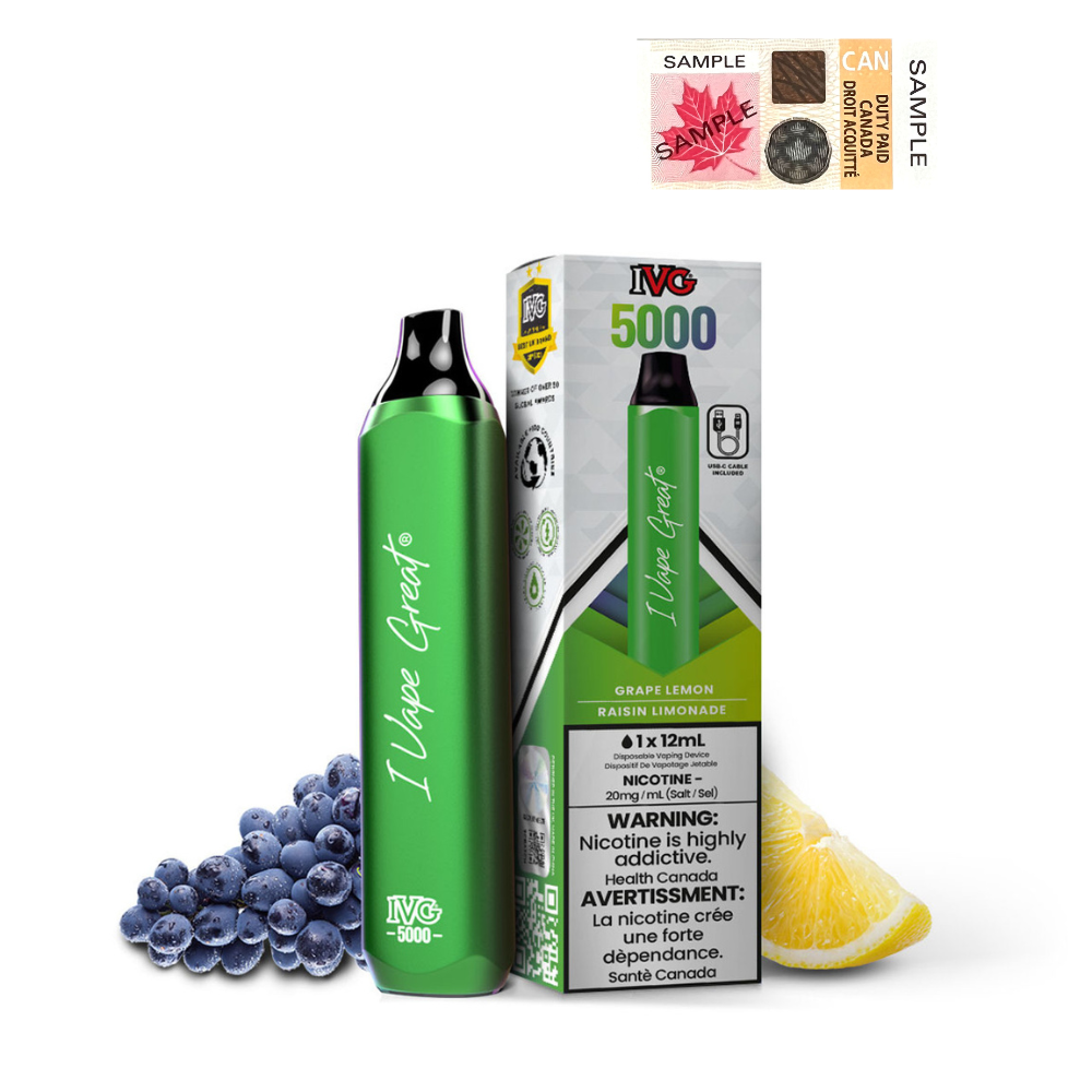 IVG Bar Max 5000 Puffs Disposable Vape - 6ct Grape Lemonade