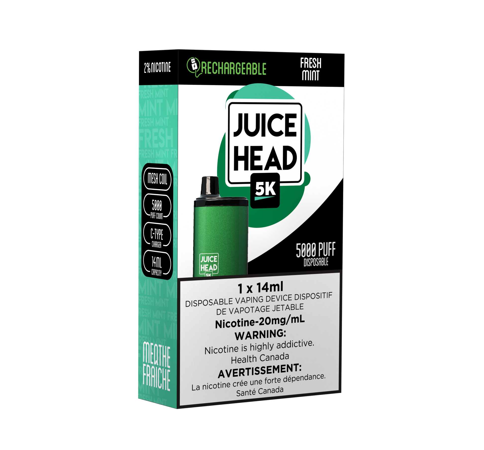 Experience a refreshingly enjoyable flavor experience with the 5000 Puff Juice Head 5K Fresh Mint Disposable.