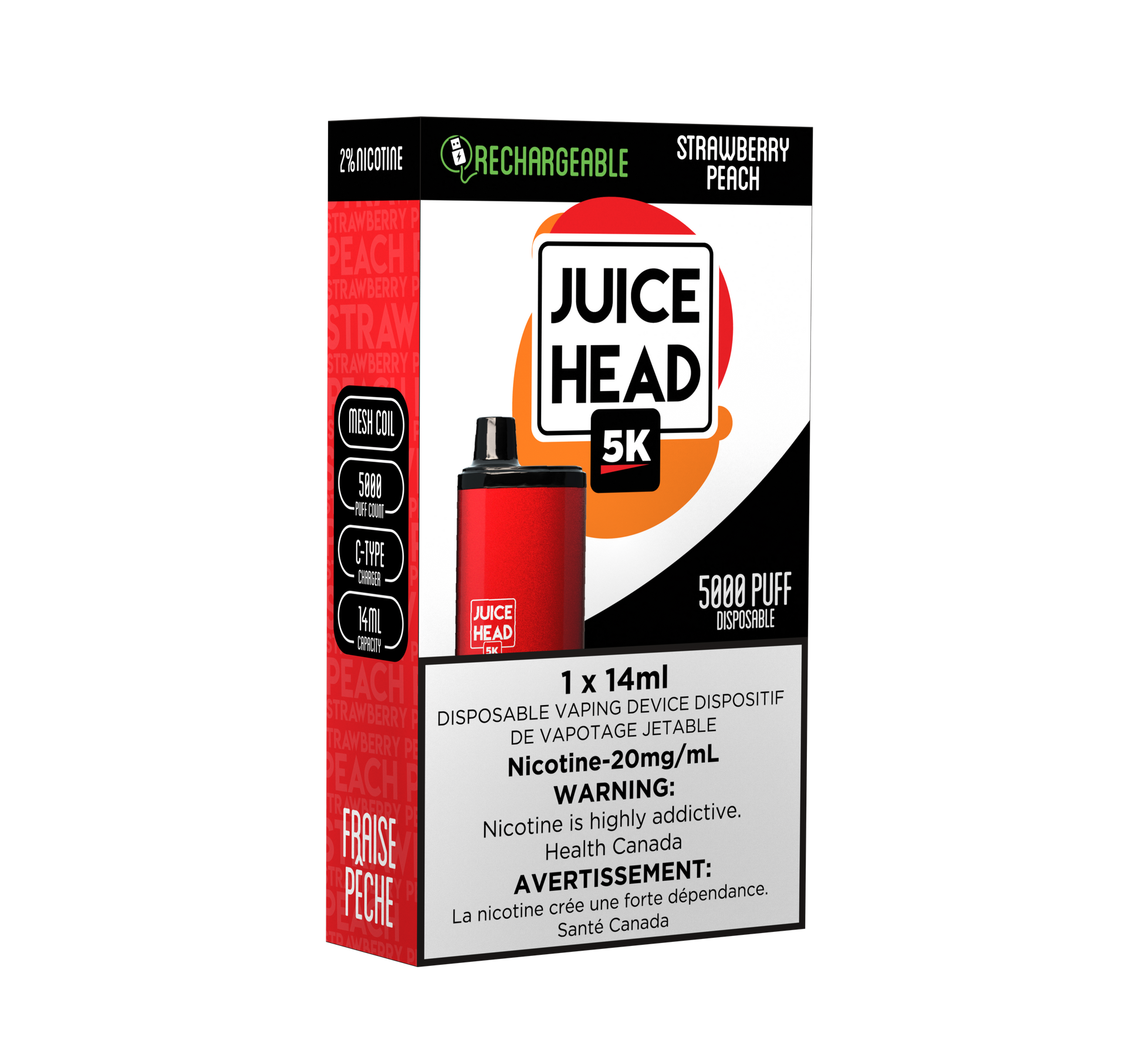 Enjoy the perfectly sweet and satisfying blend of vine-ripened strawberries and freshly picked peaches with the 5000 Puff Juice Head 5K Strawberry Peach Disposable.