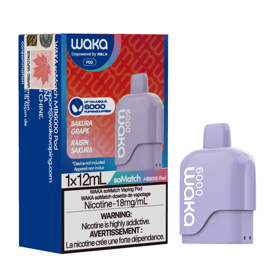 RELX Waka SoMatch MB6000 Pod- Sakura Grape 18mg 10pc/Carton