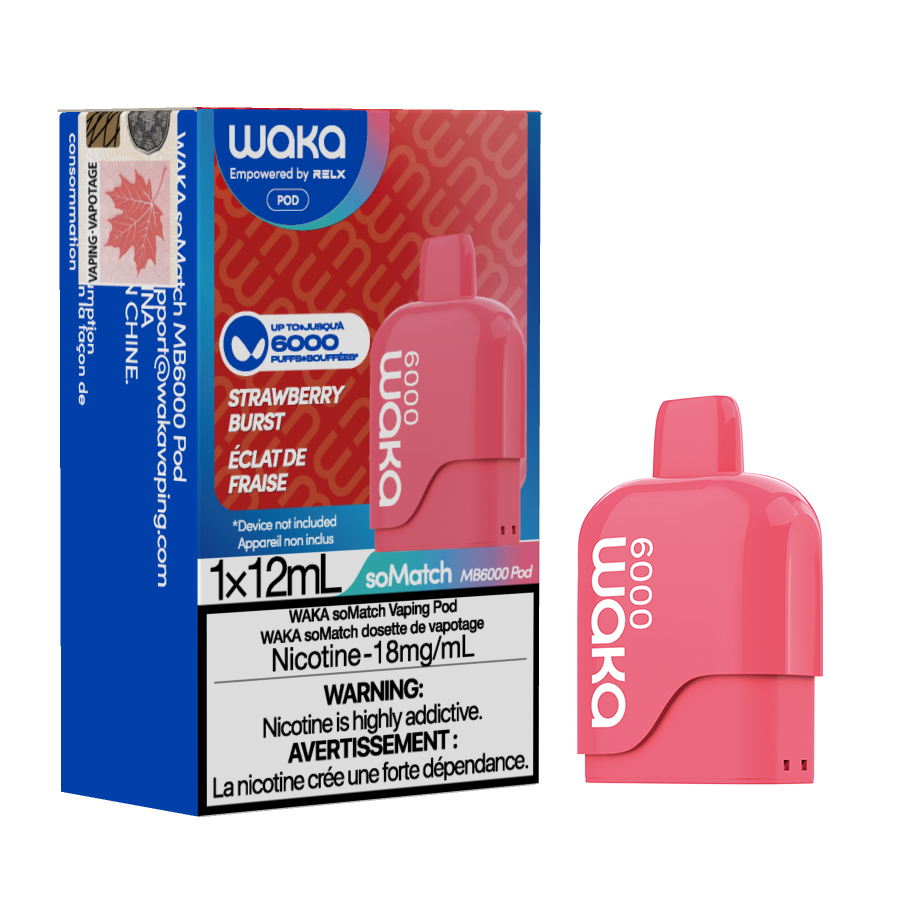 RELX Waka SoMatch MB6000 Pod- Strawberry Burst 18mg 10pc/Carton