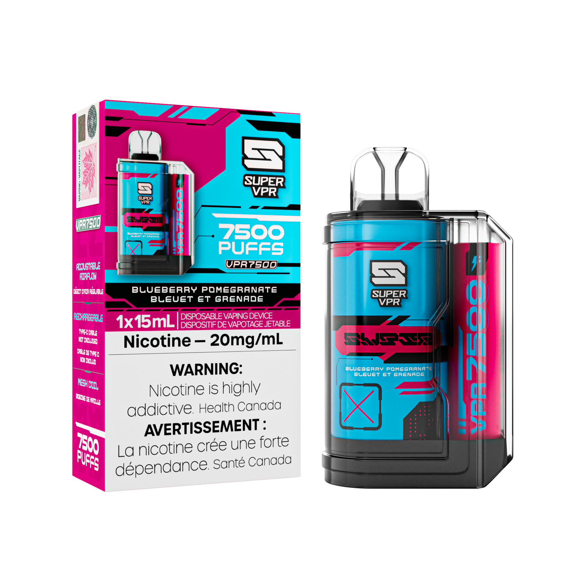 Super VPR 7500 Disposable - Blueberry Pomegranate 20MG 5pc/Carton