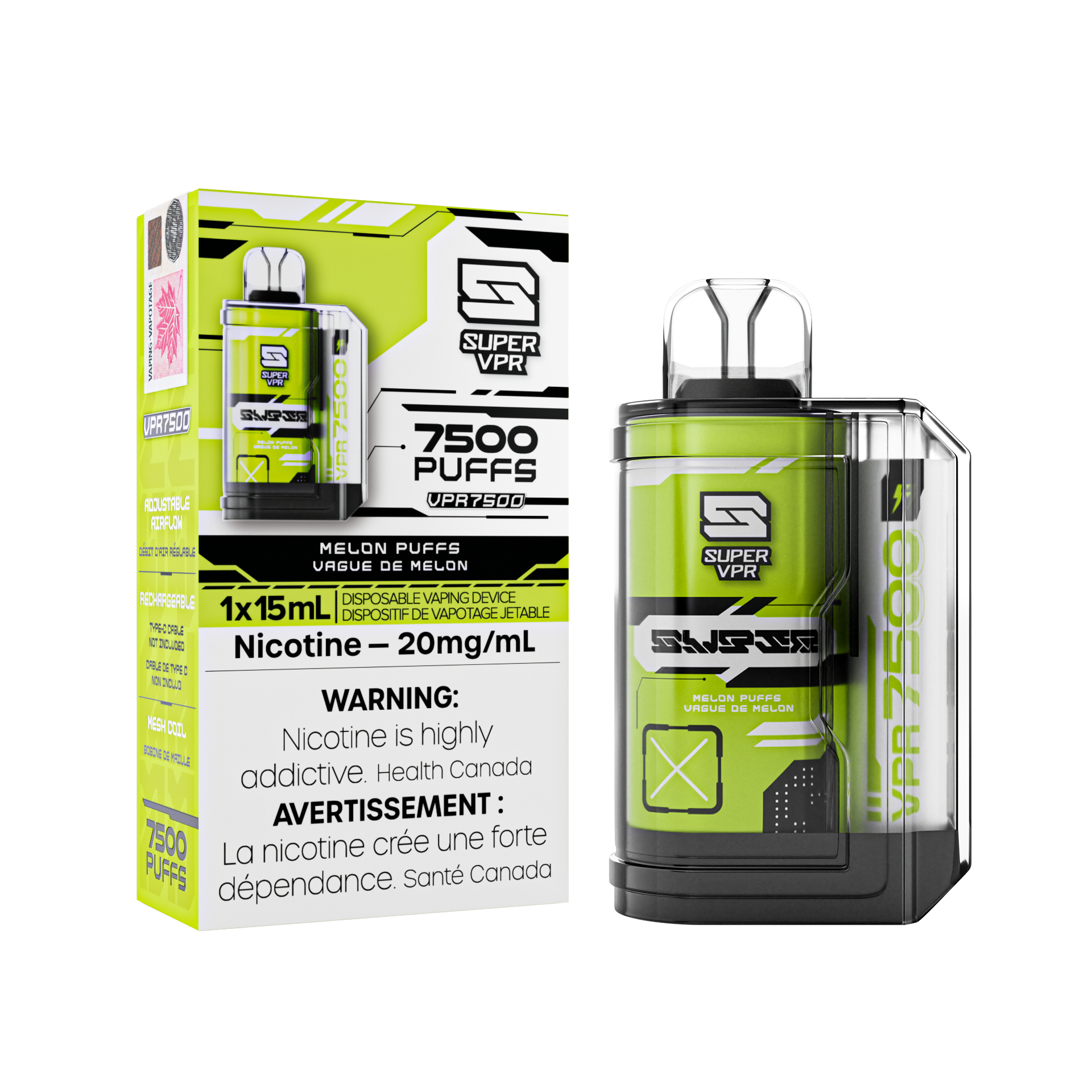 Super VPR 7500 Disposable - Melon Puffs 20MG 5pc/Carton