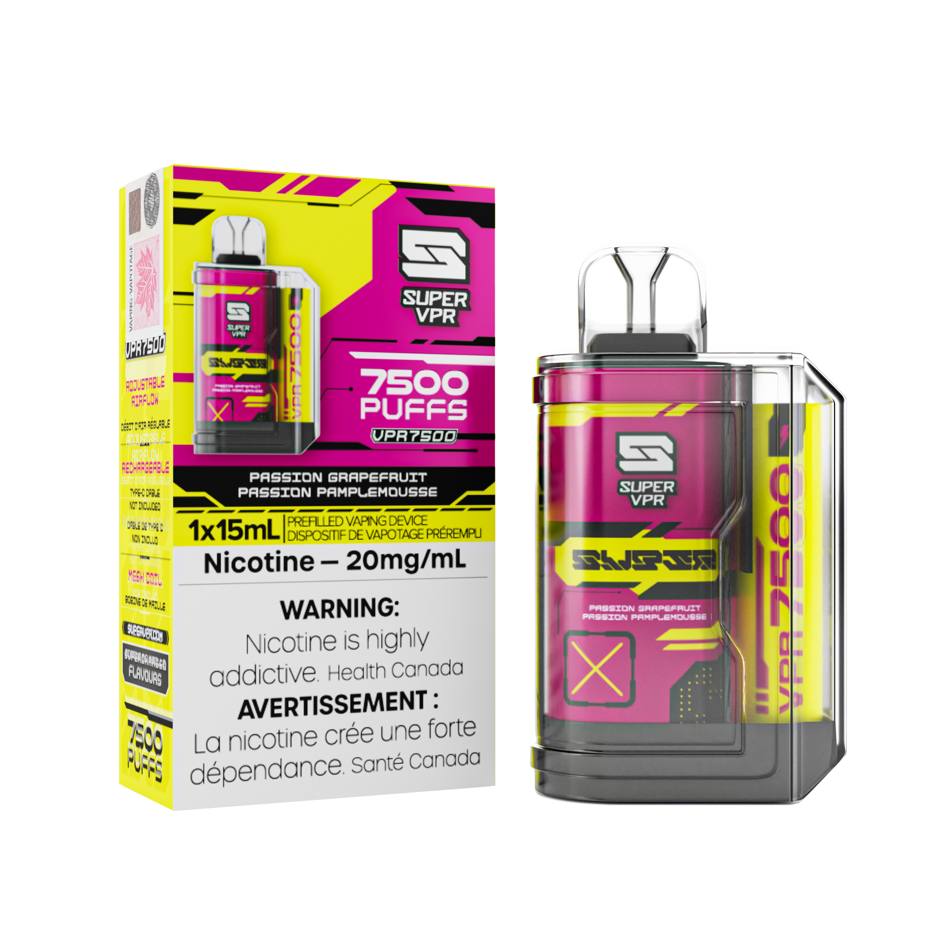 Super VPR 7500 Disposable - Passion Grapefruit 20MG 5pc/Carton